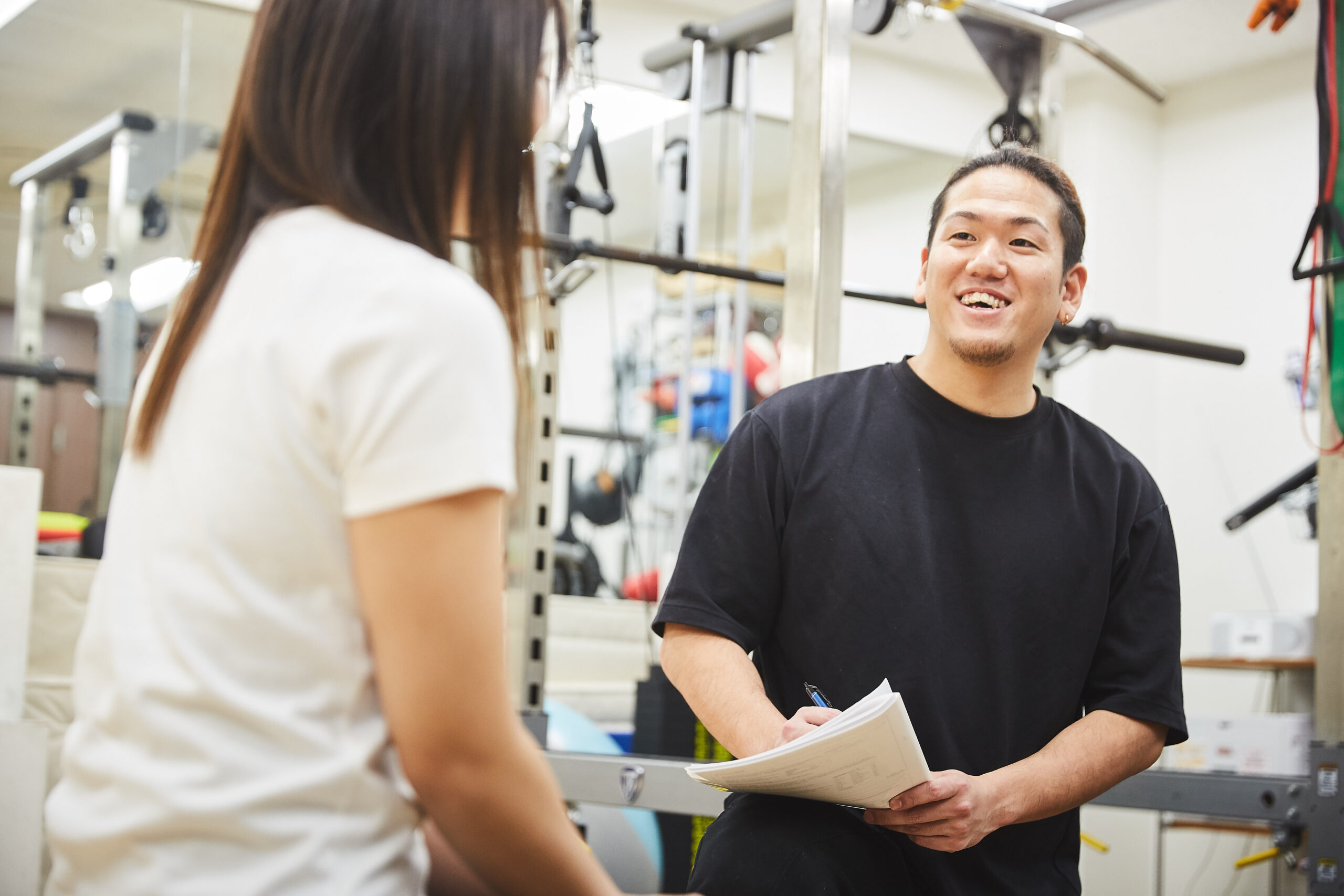 ジェネズフィットでは、体験会を開催しています。まず、あなたの目的や目標を丁寧にヒアリングし、身体の特徴やお悩みの原因を分析します。それらをもとに、目的や目標から割り出した方向性を考慮し、測定した結果をもとに専門トレーナーが個別にメニューを組み立てます。